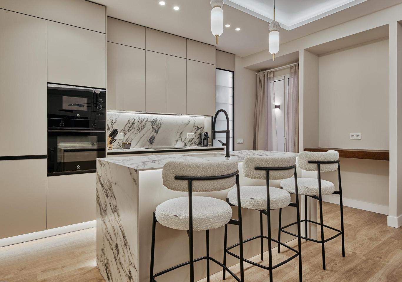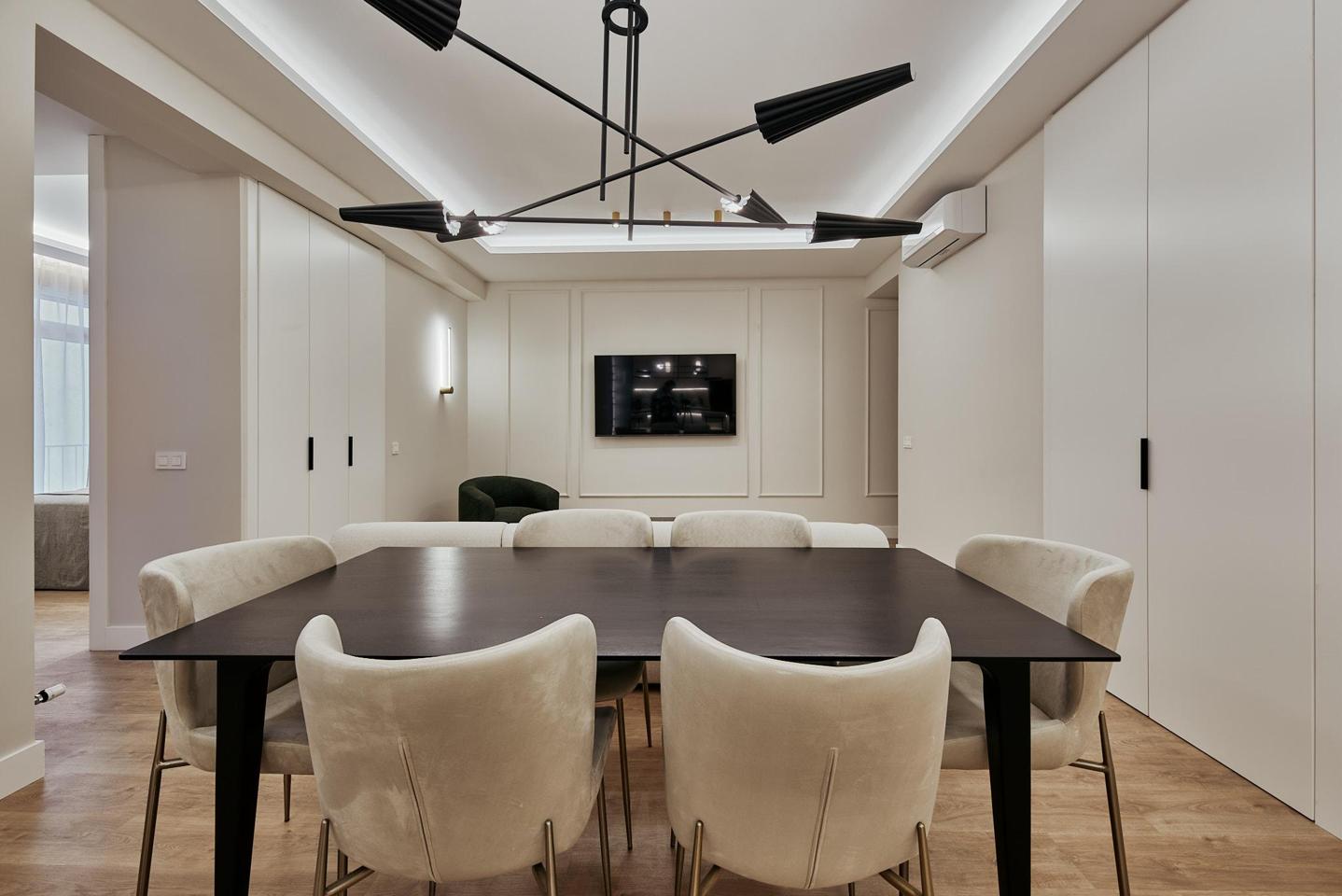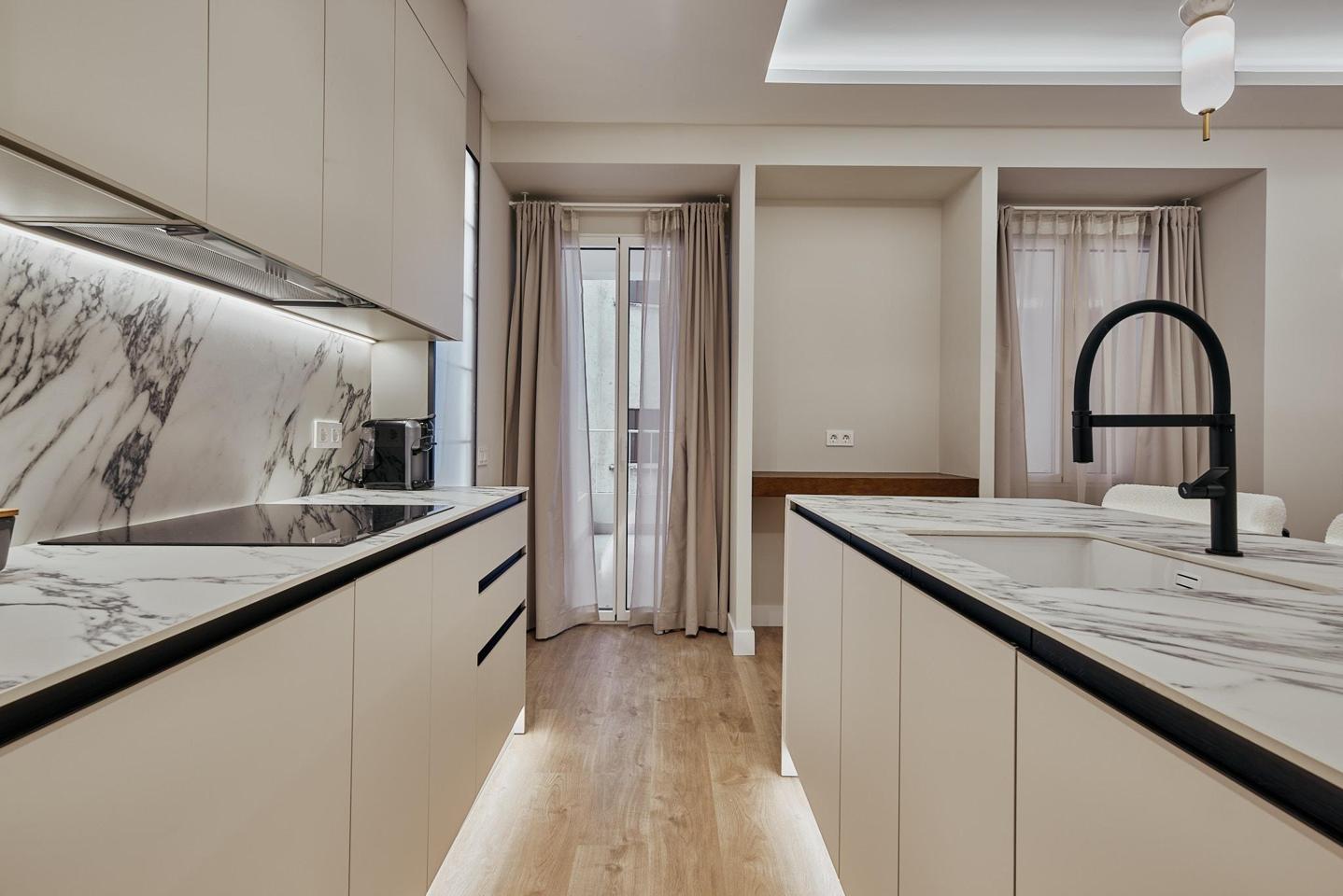 Esta vivienda reformada se encuentra en la calle Conde de Peñalver, en el consolidado barrio de Lista, dentro del prestigioso distrito Salamanca de Madrid. Situada en una cuarta planta interior de un edificio de 1950 con ascensor y servicio de portería, la propiedad ofrece un entorno tranquilo y reservado. Con 134 m² catastrales, la distribución fluida integra un salón-comedor y una cocina completamente equipada, conectando directamente con una terraza de 14 m² que aporta un agradable rincón al aire libre. La zona de descanso, compuesta por tres dormitorios y dos baños completos, se complementa con un vestidor que refuerza la comodidad. La vivienda, amueblada y lista para entrar a vivir, cuenta con calefacción comunitaria y aire acondicionado, asegurando bienestar durante todo el año. Su orientación noroeste permite la entrada de luz natural, creando un ambiente equilibrado y acogedor.